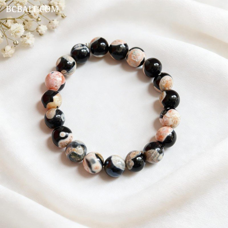 A handcrafted bracelet made by local artisans in Bali, featuring quality natural stone. Each piece is individually handmade, giving it a unique character and a timeless, elegant look suitable for everyday wear or special moments.