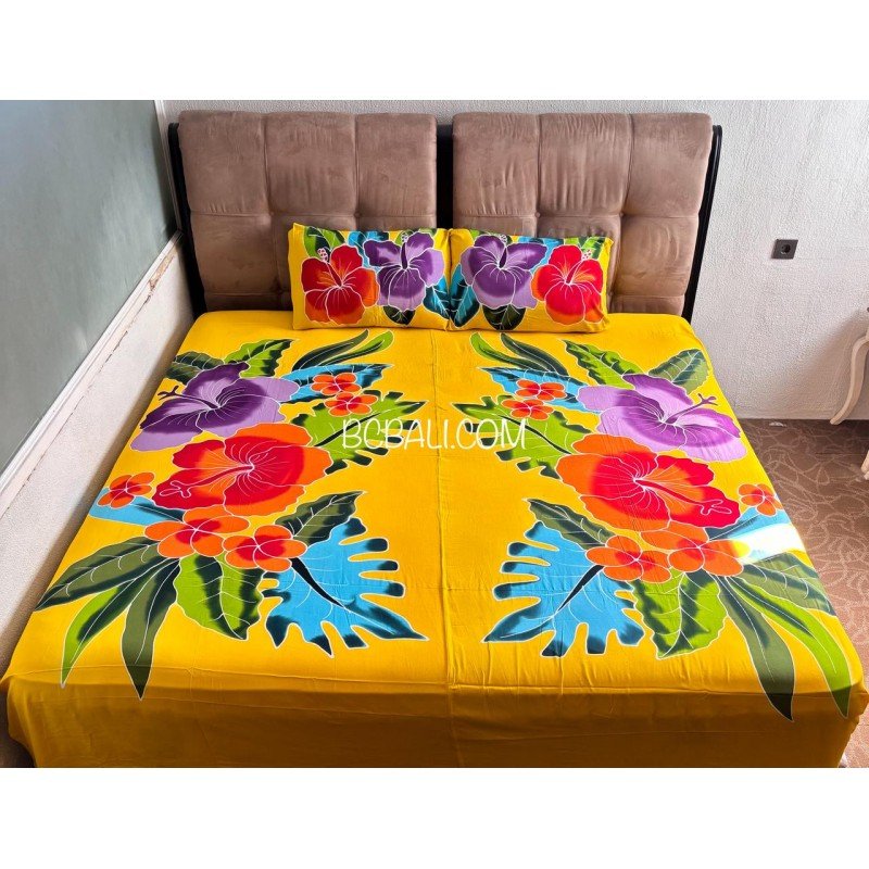 New Design 2026 Rayon Bedsheet Hand Painted Floral Design Originally Handmade in Bali by Balinese Artisans High Quality