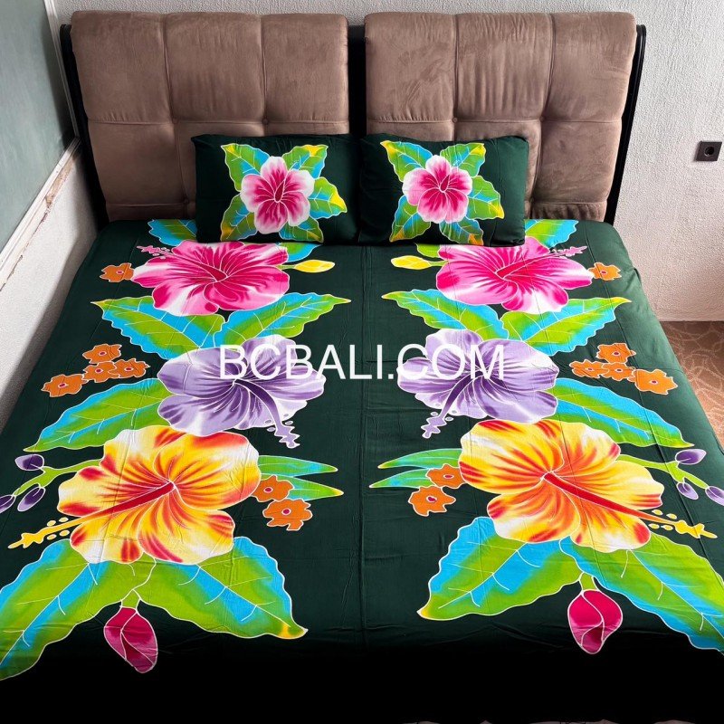 Best Quality Rayon Bedsheet Hand Painted Floral Design Originally Handmade in Bali by Balinese Artisans High Quality