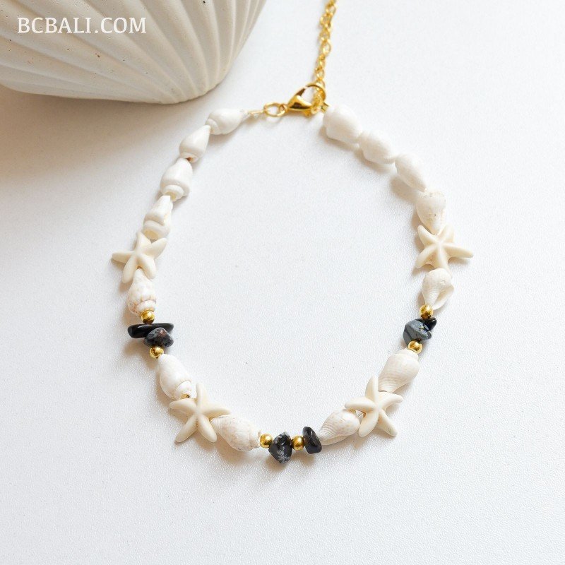 Handcrafted with care, this bracelet features a timeless combination of natural shells and natural stones. Each piece is individually handmade, making every bracelet unique with its own organic character. Designed for effortless everyday wear, it reflects a natural, coastal inspired elegance that suits any style and occasion.