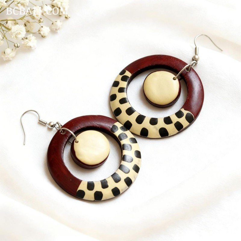 A handcrafted wood earrings made by local artisans in Bali. Each piece is individually handmade, giving it a unique character and a timeless, elegant look suitable for everyday wear or special moments.