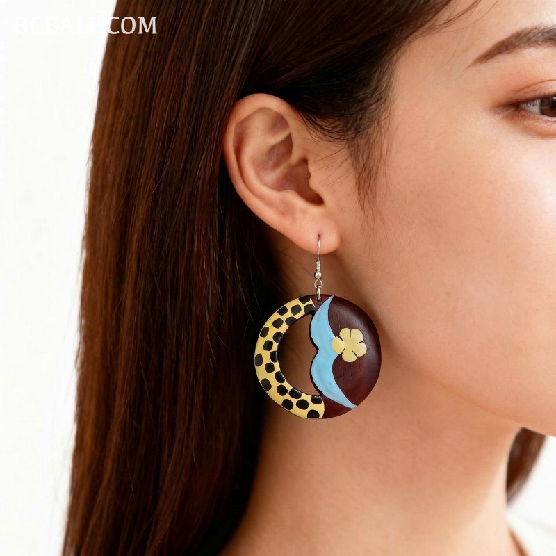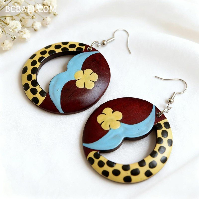 Handcrafted Painting Wood Earrings Originally Handmade in Bali.