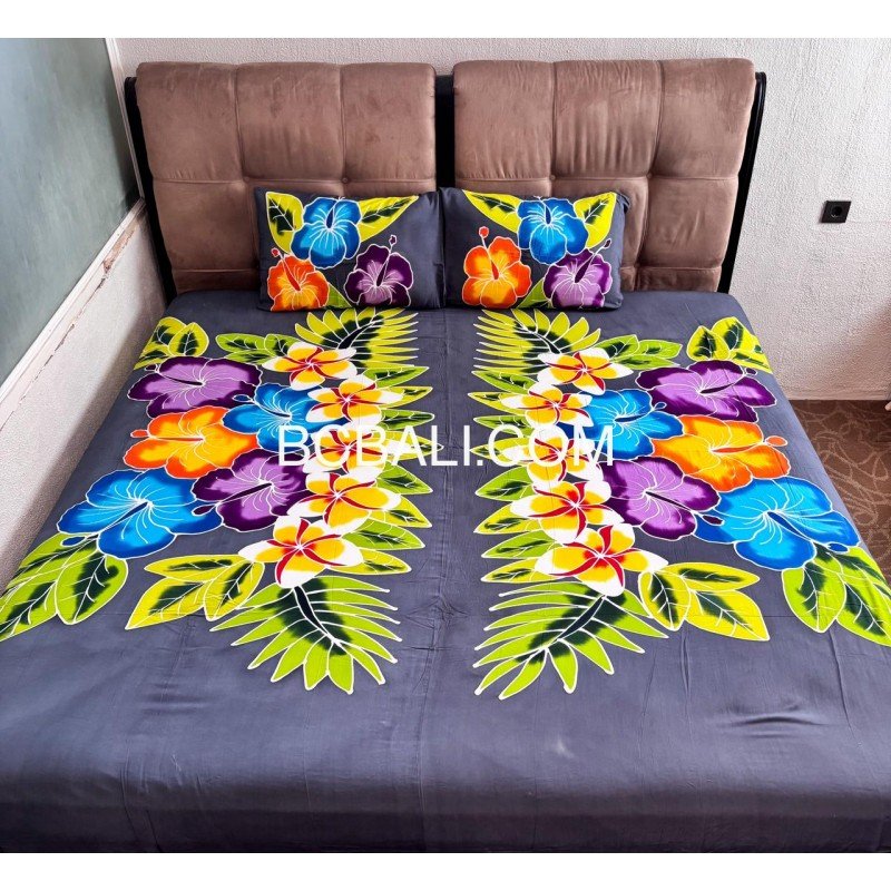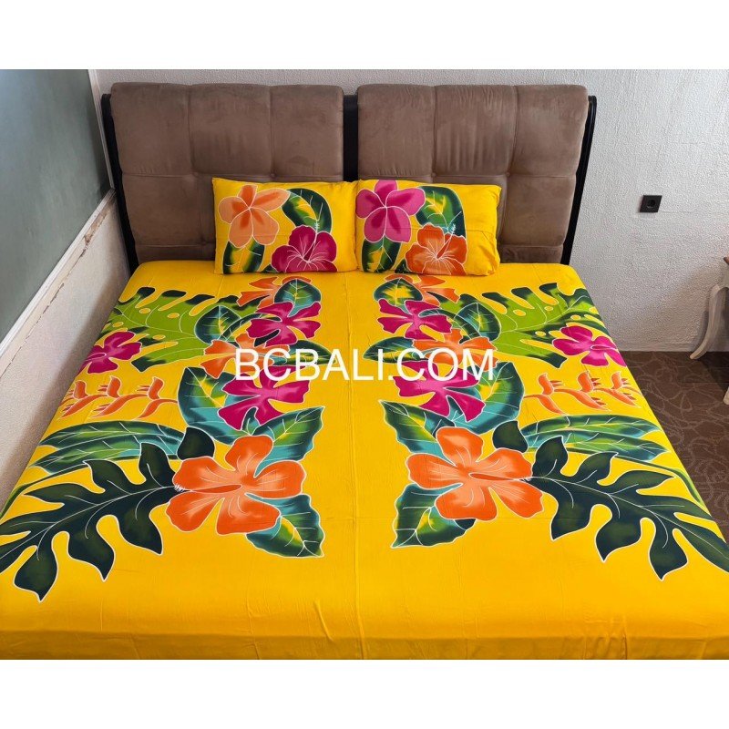 Handcrafted Rayon Bedsheet Hand Painted Floral Design Originally Handmade in Bali by Balinese Artisans High Quality