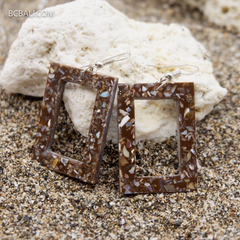 These handcrafted resin shell earrings are made using a blend of high quality resin and natural shell elements. Each pair is carefully handmade by artisans, giving every piece its own unique character and natural variation.
