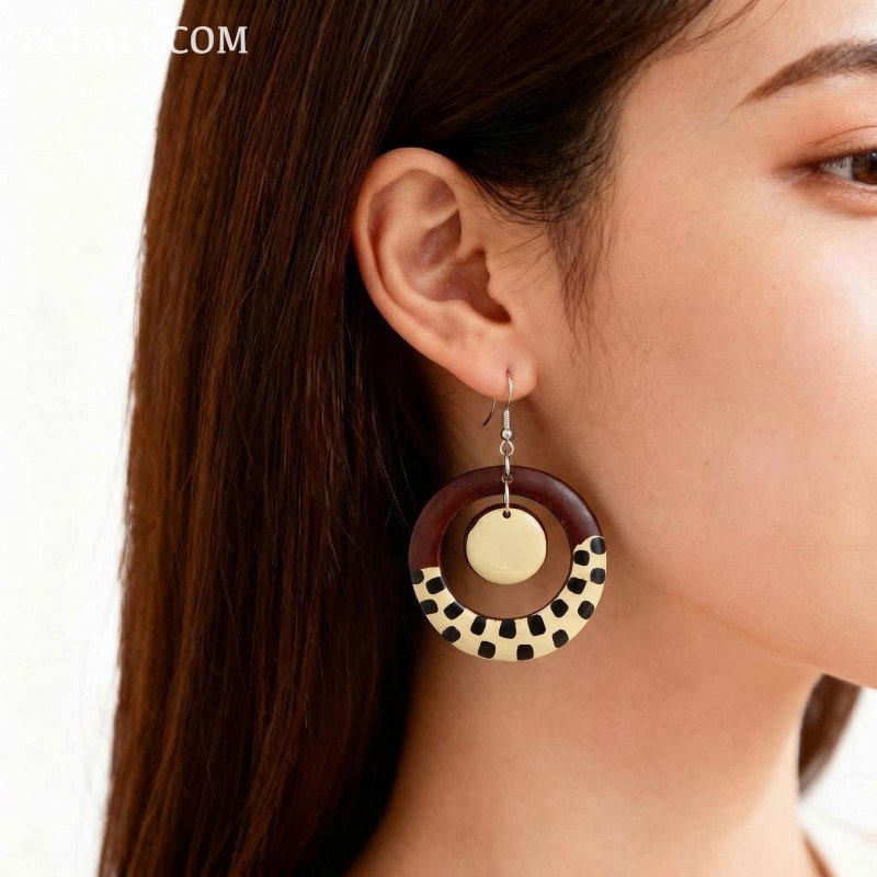 A handcrafted wood earrings made by local artisans in Bali. Each piece is individually handmade, giving it a unique character and a timeless, elegant look suitable for everyday wear or special moments.